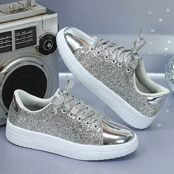 Product information: Upper Material: Artificial PU Fashion elements:sequins,stitching,shallow mouth Toe Shape: Round Toe Color:plum red,blue,pink,black,silver Size:35,36,37,38,39,40,41,42,43,44 Function:Height increase,balance Sole Material:Rubber+MD+TPU Wearing Style:Front Lace Up Heel...